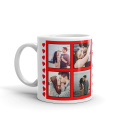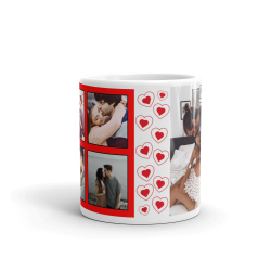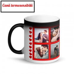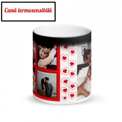 Cană personalizată cu un colaj superb de 5 poze printate direct in materialul cănii la calitate foto premium, rezistentă la multiple spalări și rezistentă la zgârituri, este un cadou perfect pentru cupluri îndrăgostițiare se iubesc și nu numai, este un cadou pe care îl poți face unei persoane dragi din viața ta, această cană personalizată cu 5 poze și inimioare este un cadou personalizat unic care rămâne o amintire de lungă durată.