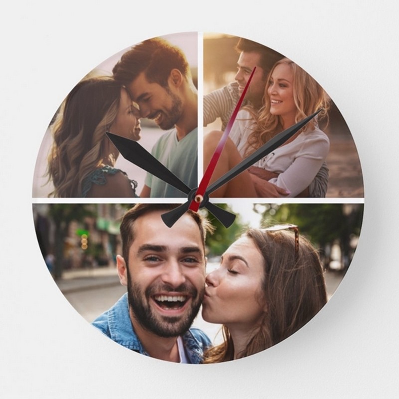Ceas de perete personalizat cu 3 poze, inedit pentru persoanele care vor sa dăruiască un cadou unic persoanei dragi din viața lor, perfect pentru persoanele care se iubesc și împreună au cele mai frumoase amintiri care vor să își amintească cu drag în fiecare zi de ele, un cadou unic pentru cupluri îndrăgostiți.