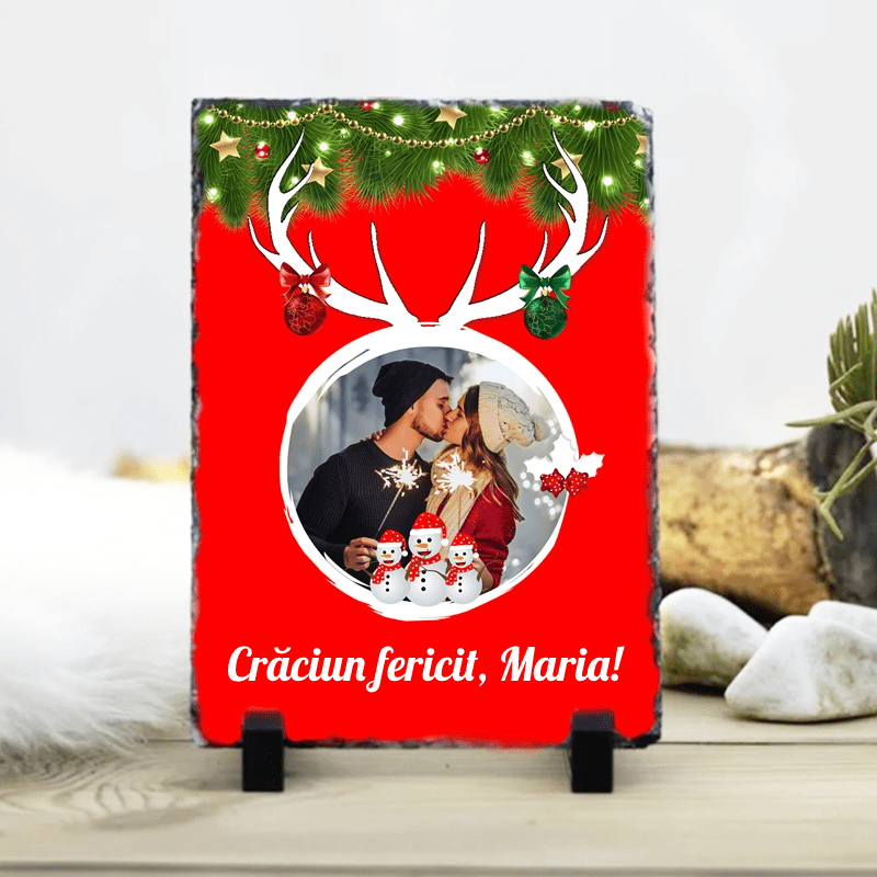 Căutați un cadou perfect de Crăciun sau un decor special pentru biroul sau camera dvs.? Această placă de ardezie cu fotografie este o alegere excelentă! Poate fi folosită ca o ramă foto sau ca element decorativ pe măsuța de cafea, pe raft, birou sau noptiera din camera dvs. Personalizați-o cu fotografia dvs. preferată pentru a crea un cadou unic care vă va aminti de momentele speciale petrecute împreună.