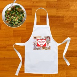 Șorț de bucătărie personalizat cu 4 poze și mesaj, un cadou perfect pentru cei dragi, șorțul se poate personaliza cu pozele tale preferate și mesajul tău, este un cadou pe care îl poti face oricărei persoane dragi din viața ta care este pasionată de gătit, de cele mai bune bunătățuri.