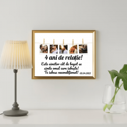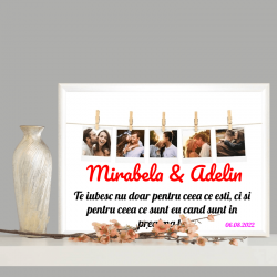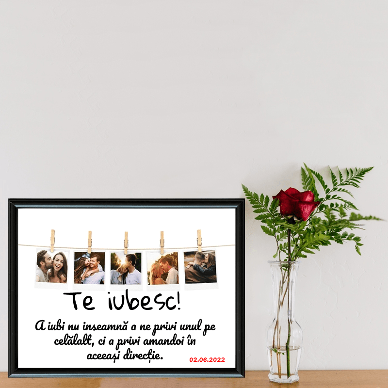 Tablou foto personalizat, colaj cu 5 fotografii și text, totul printat la calitate foto premium pe hârtie foto specială pentru ca tu să te bucuri de un cadou personalizat exact asa cum ti-ai dorit. Perfect de pus pe perete, birou sau living, tu alegi, se asortează perfect cu orice decor al casei tale.