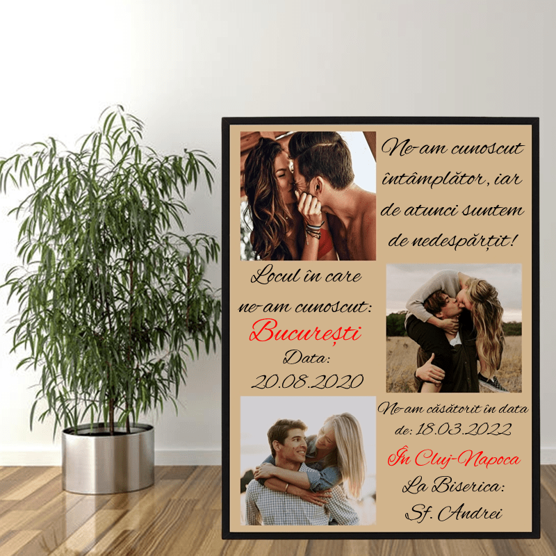 Este un cadou care nu se demodează în timp și nu își pierde din valoare, este o amintire de lungă durată care în timp va reflecta iubirea și amintirile voastre. Personalizați-vă propriul Tablou cu momentele voastre unice.