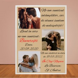 Tablou personalizat cu 3 poze și text. Un cadou personalizat perfect pentru persoana iubită pe care îl poți dărui cu ocazia unei aniversări relație, zi de nastere sau alt eveniment important din viața ta sau persoanei dragi pe care o iubesti.