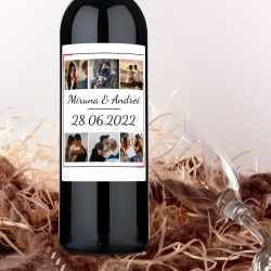 Sticlă de vin personalizată cu 4 poze și mesaj