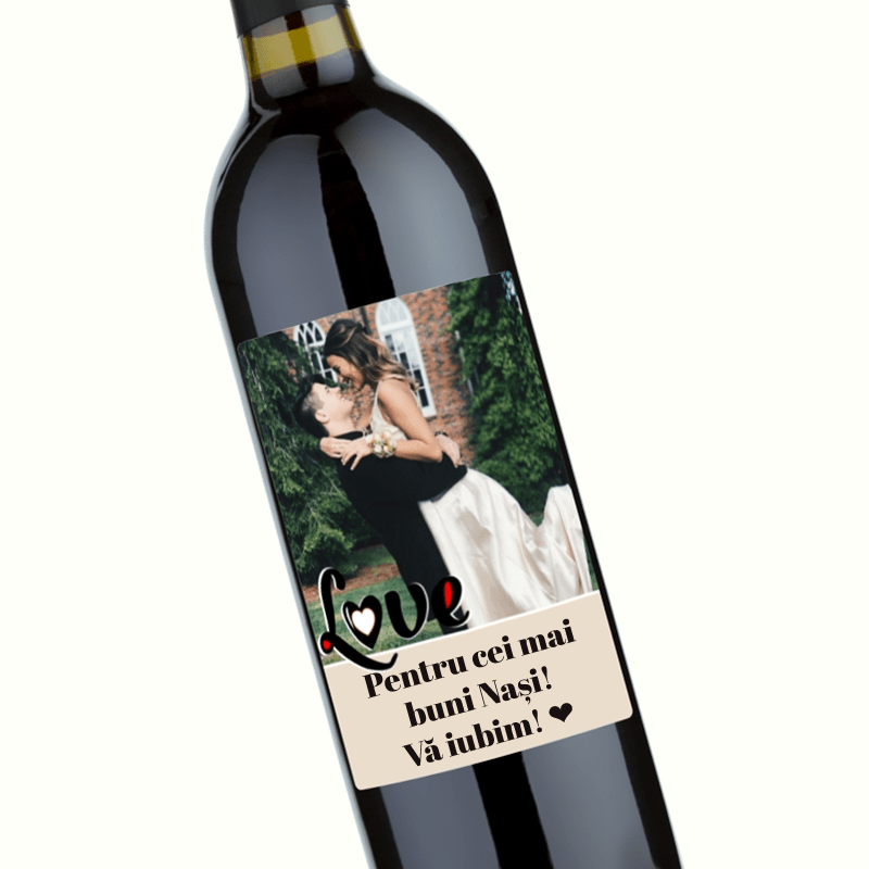 Vin personalizat cu o poză model LOVE. Se poate personaliza cu o poză și mesajul tău de dragoste sau mulțumire. Oferă un gram de bucurie și emoție persoanelor dragi din viața ta cu un cadou personalizat unic și care nu se demodează în timp. Tot ce trebuie să faci e să apesi butonul "PERSONALIZEAZĂ" și să începi personalizarea sticlei tale de vin.