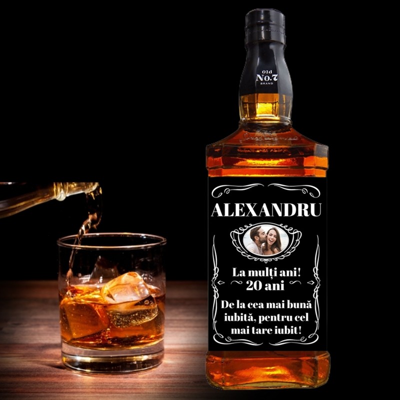 Sticlă de Whiskey Personalizată cu poza și mesajul tău preferat. Jack Daniels face parte din topul băuturilor fine. Cu gheață sau stins cu orice altceva, tu alegi. O sticlă de Whiskey Personalizată este un cadou inedit perfect pentru orice aniversare, îl poți personaliza direct pe site-ul nostru cu poză si textul tău preferat.
